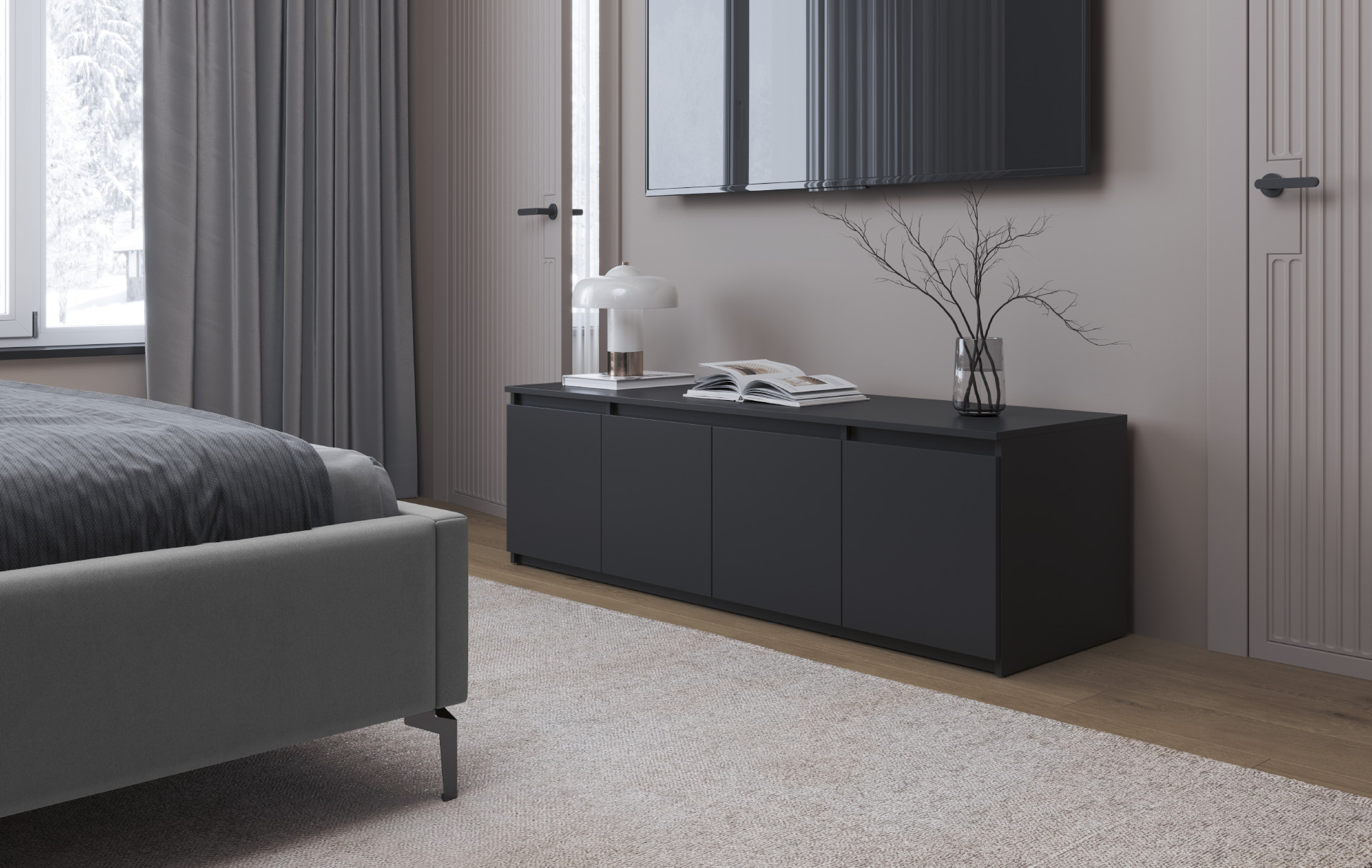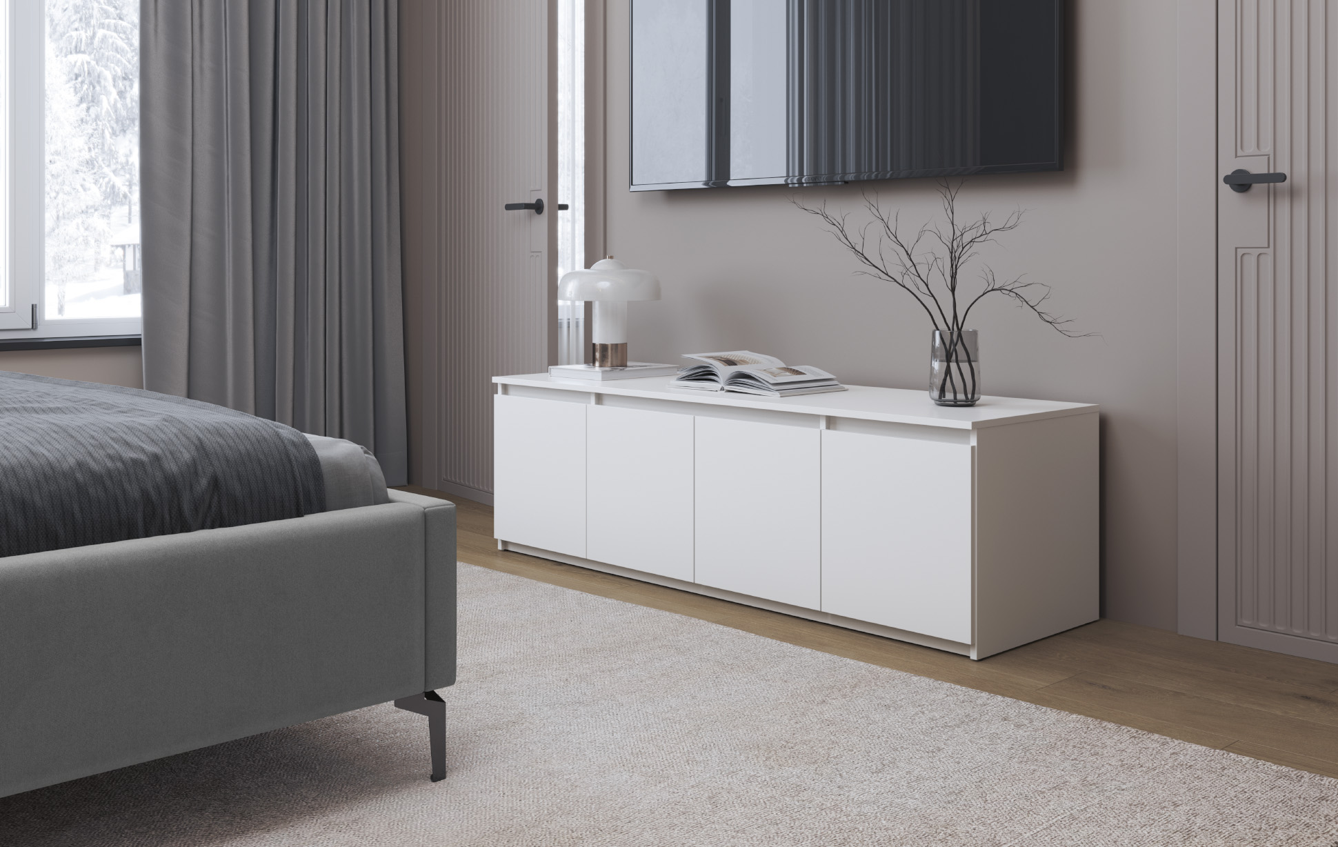 Тумба 82.04 Берген (4-х дв.) (диамант серый / ДВПО: белый) исполняется в классическом стиле и спокойных цветах. Модель сочетает в себе простоту и функциональность, но при этом не выглядит громоздко. Она гармонично впишется в пространство, не утяжеляя его.