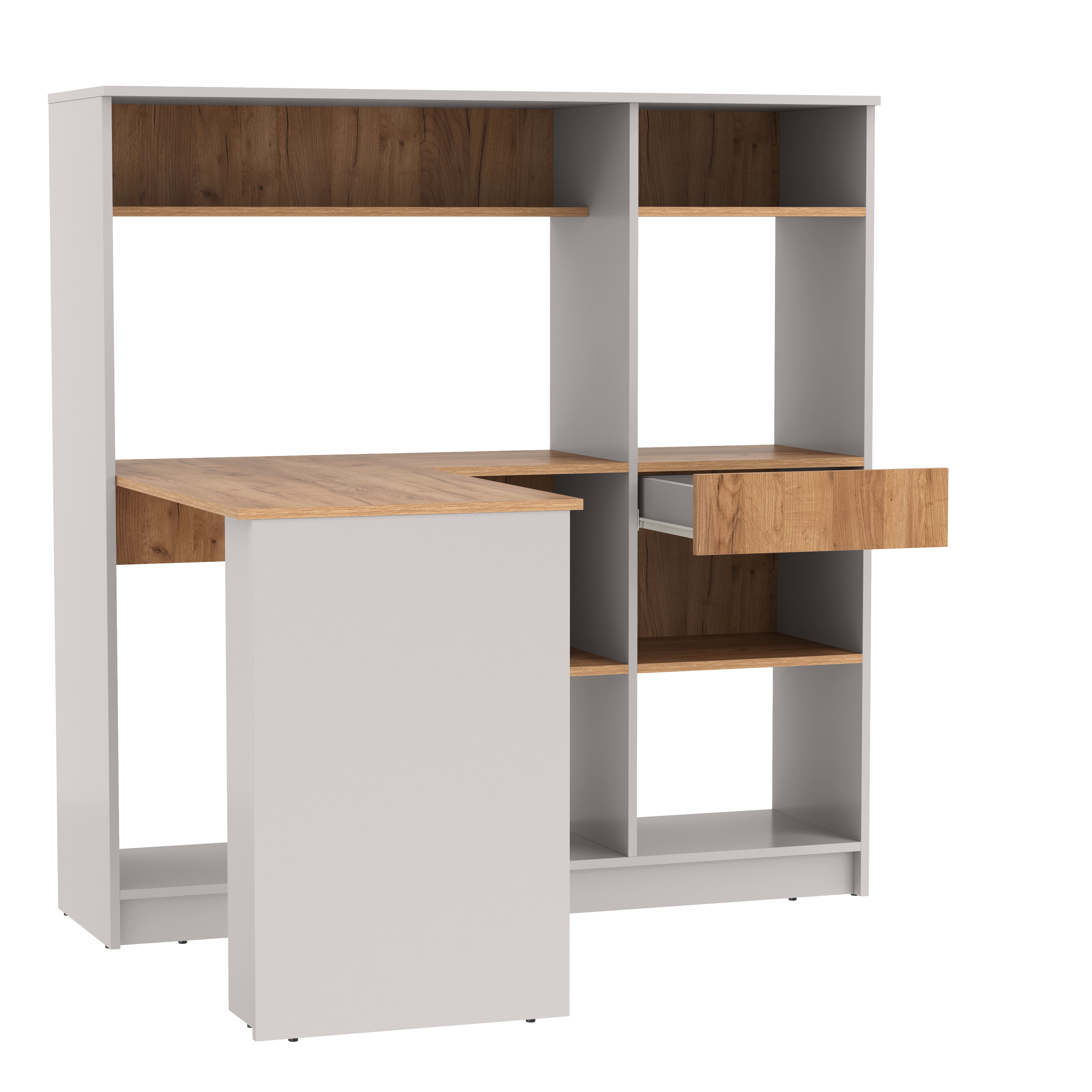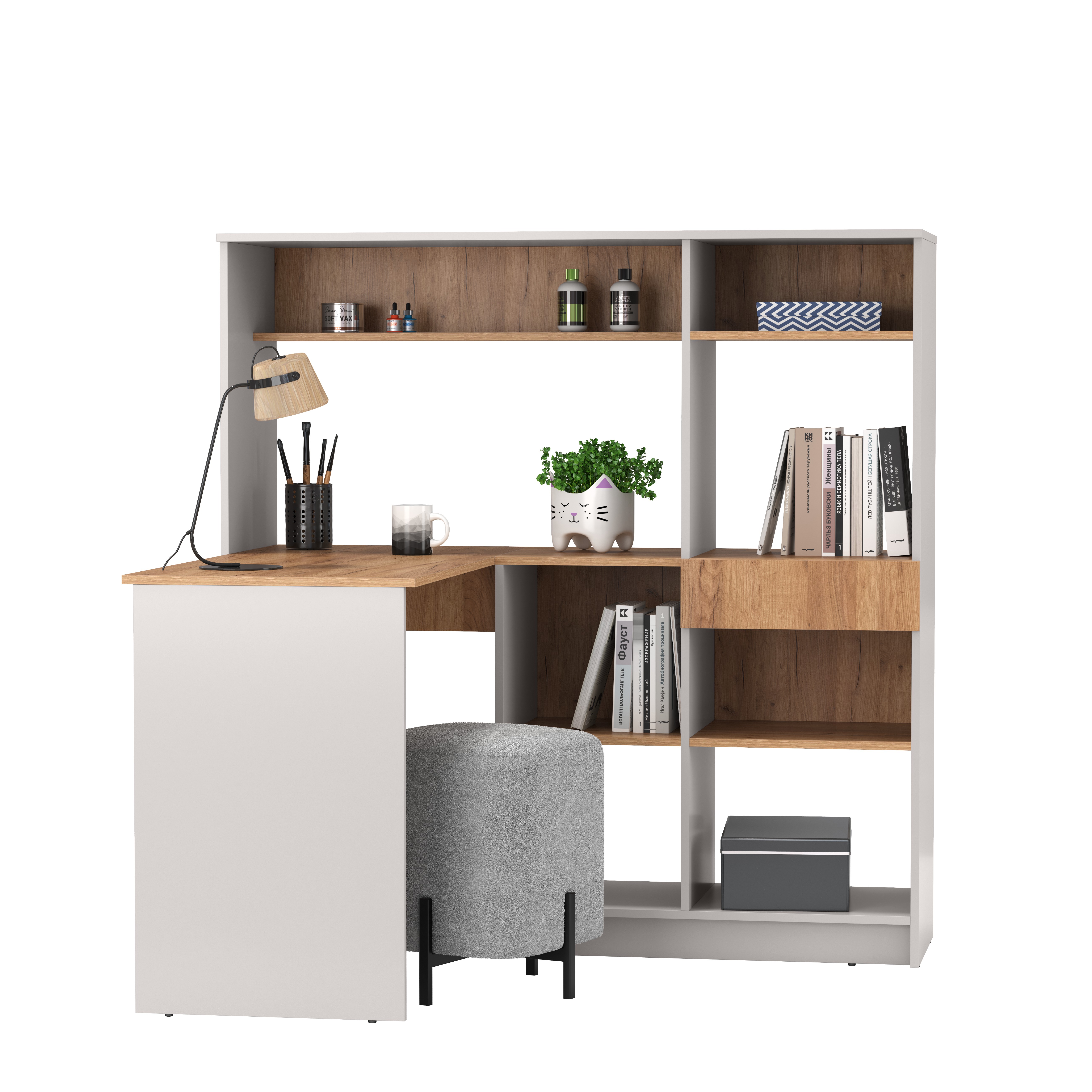 Стол письменный 89.11 Прайм угловой левый (кашемир / дуб золотой / ДВПО: серый камень) совмещает благородную привлекательную эстетику с практичностью и хорошим функционалом. Продуманный дизайн уместно дополнит созданный интерьер и органично впишется в любое помещение.