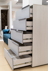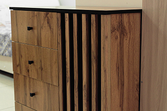 Выбрала этот комод за компактность, но хорошую вместительность. Он неширокий, поэтому легко поместился в нужное место. Удобные ручки, ящики плавно ходят. Мебель от Олмеко всегда сравнительно недорого выходит. И как правило, качество радует.