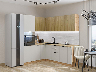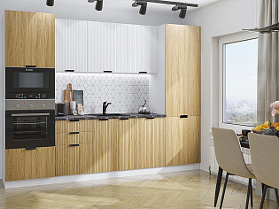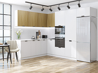 Главный плюс: много шкафчиков.  Выбрали вариант сандал белый. И не прогадали. Смотрится великолепное. Жаль, что двери идут без доводчиков.