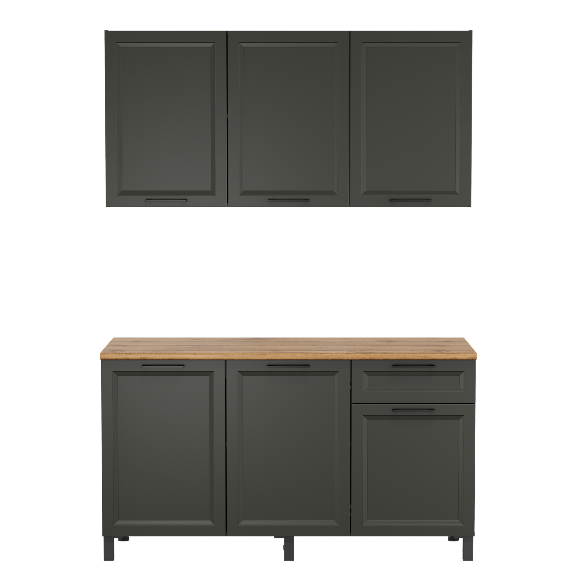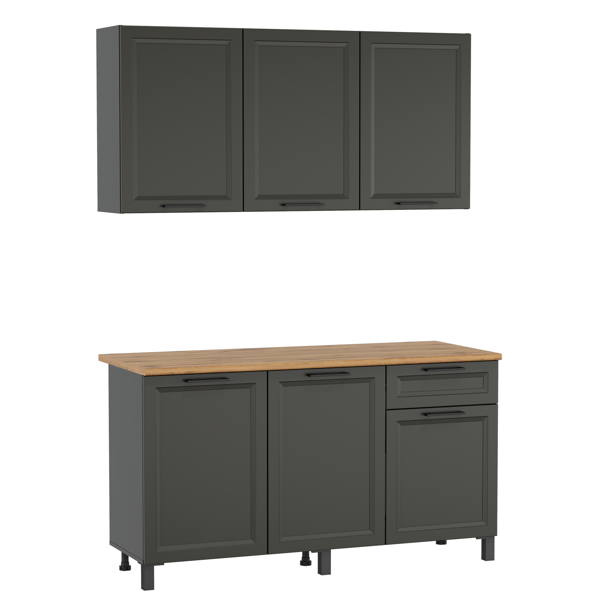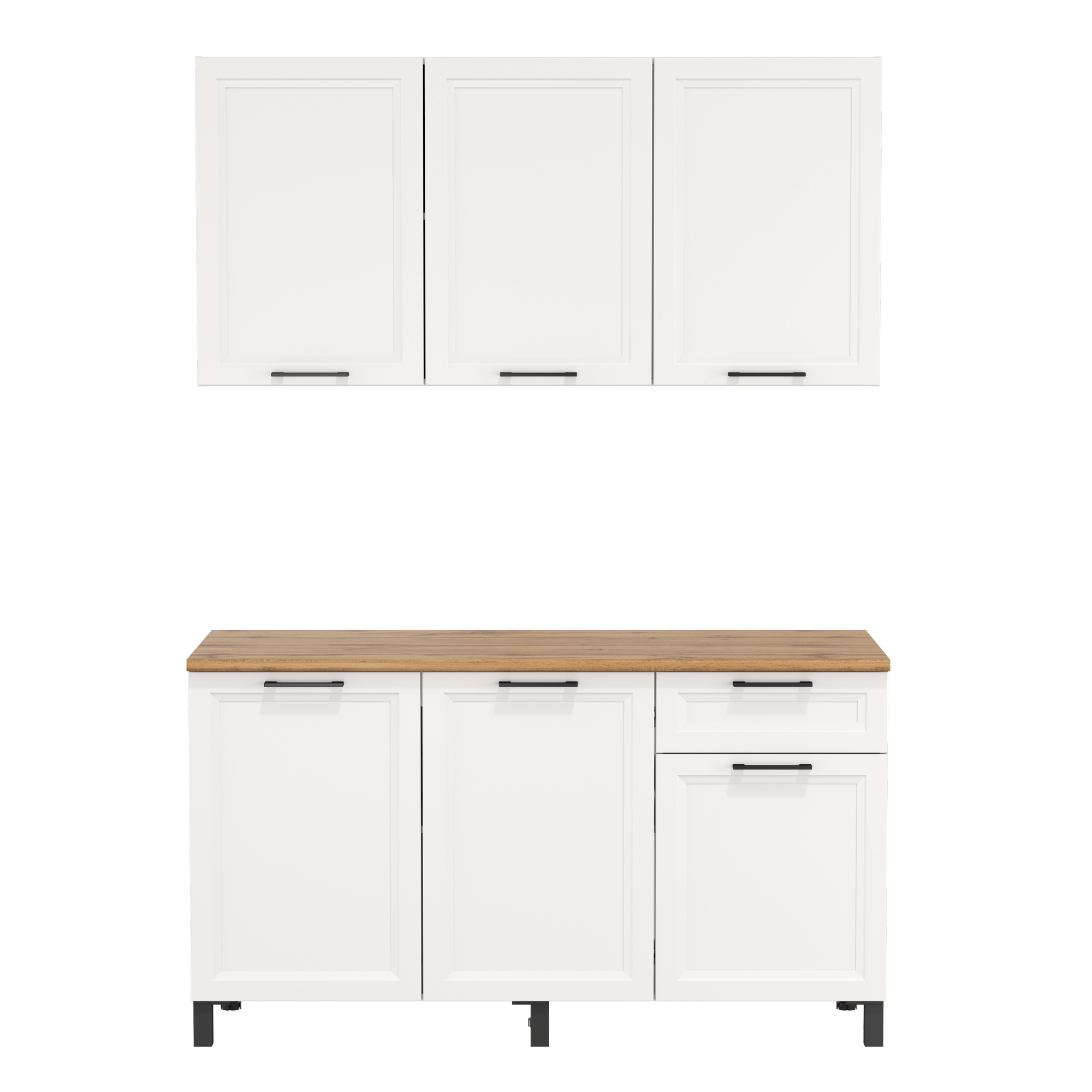 Кухня Римини (1500) (белый / столешница: дуб вотан / ДВПО: белый / ПВХ белый (О) / профиль: ПВХ белый (О)) исполняется в классическом стиле и спокойных цветах. Модель сочетает в себе простоту и функциональность, но при этом не выглядит громоздко. Она гармонично впишется в пространство, не утяжеляя его.