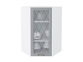 Шкаф верхний угловой остекленный Глетчер (716х600х600)