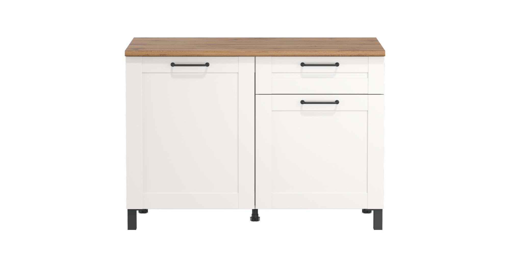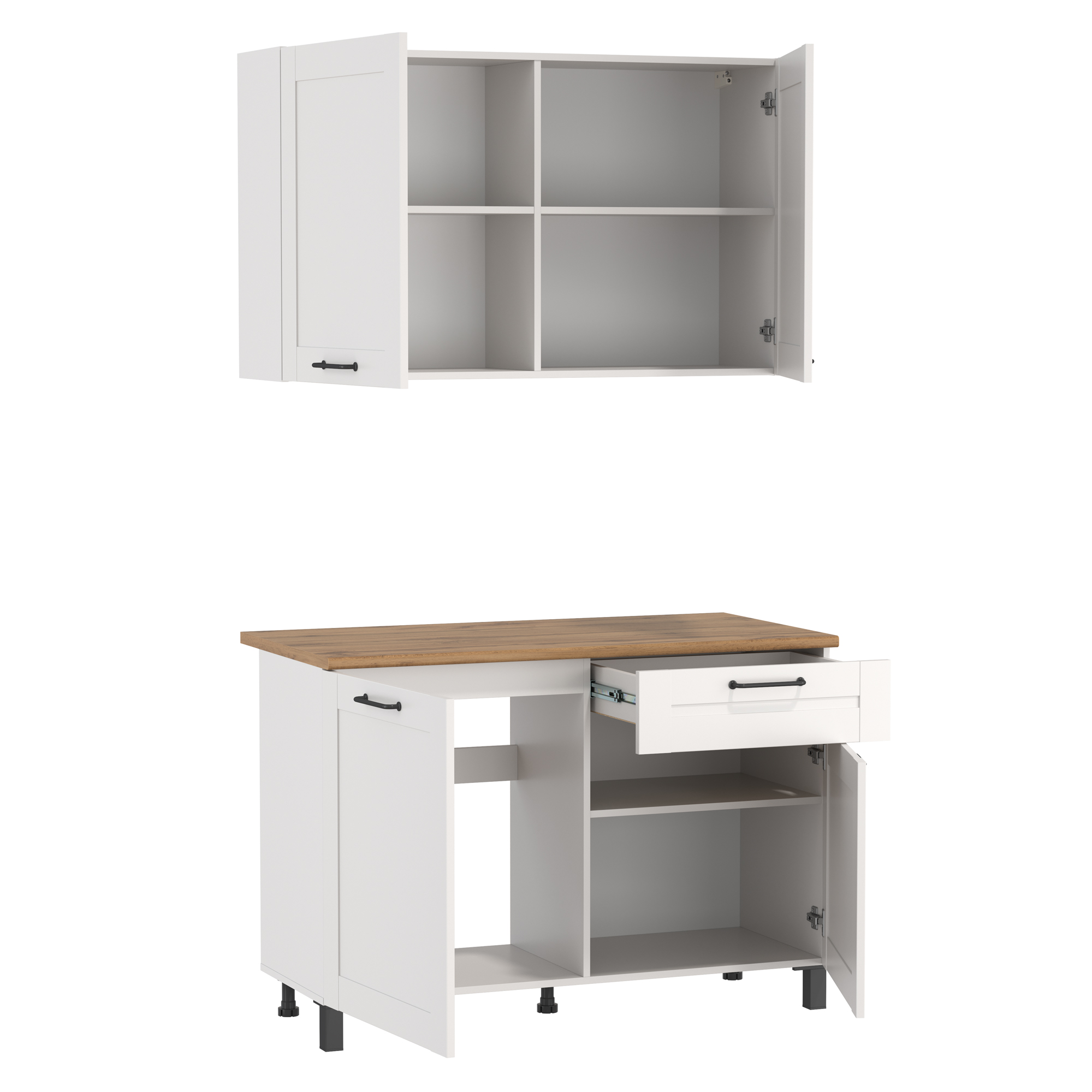 Шкаф Аризона (1200) (белый / столешница: дуб вотан / ДВПО: белый / профиль: ПВХ белый О) совмещает благородную привлекательную эстетику с практичностью и хорошим функционалом. Продуманный дизайн уместно дополнит созданный интерьер и органично впишется в любое помещение.