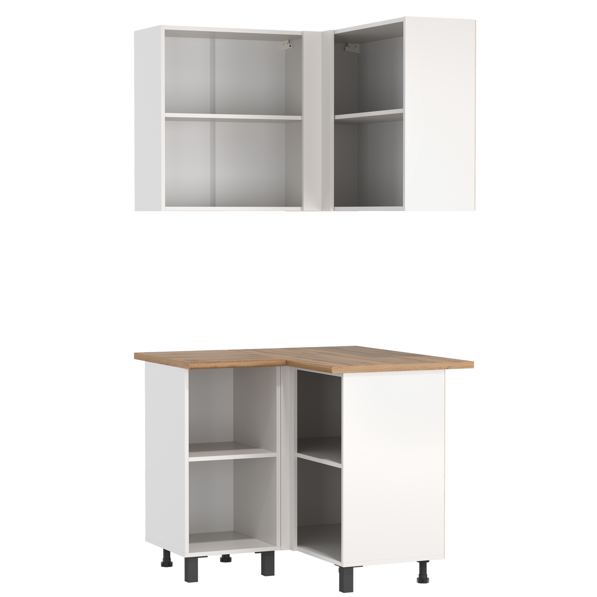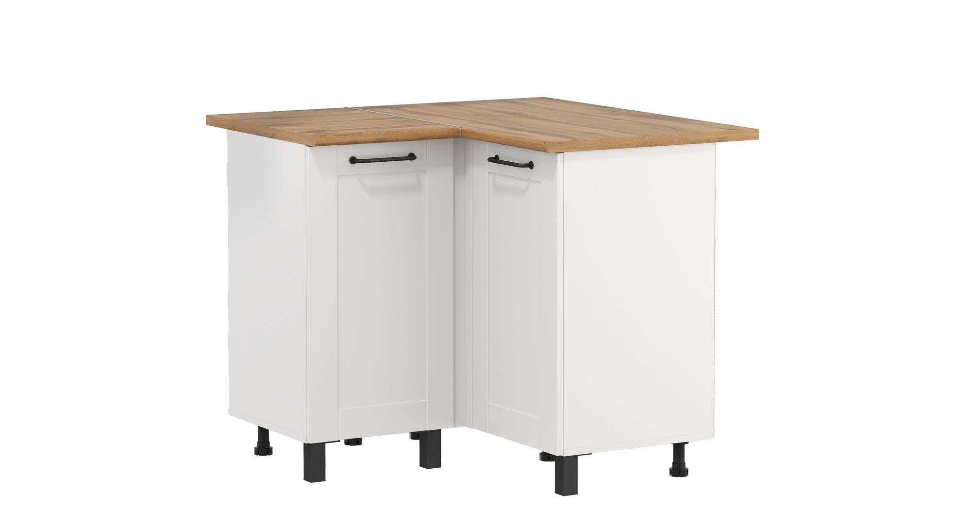 Шкаф угловой Аризона (белый / столешница: дуб вотан / ДВПО: белый / ПВХ софт белый 0,3мм / профиль: ПВХ белый О) исполняется в классическом стиле и спокойных цветах. Модель сочетает в себе простоту и функциональность, но при этом не выглядит громоздко. Она гармонично впишется в пространство, не утяжеляя его.