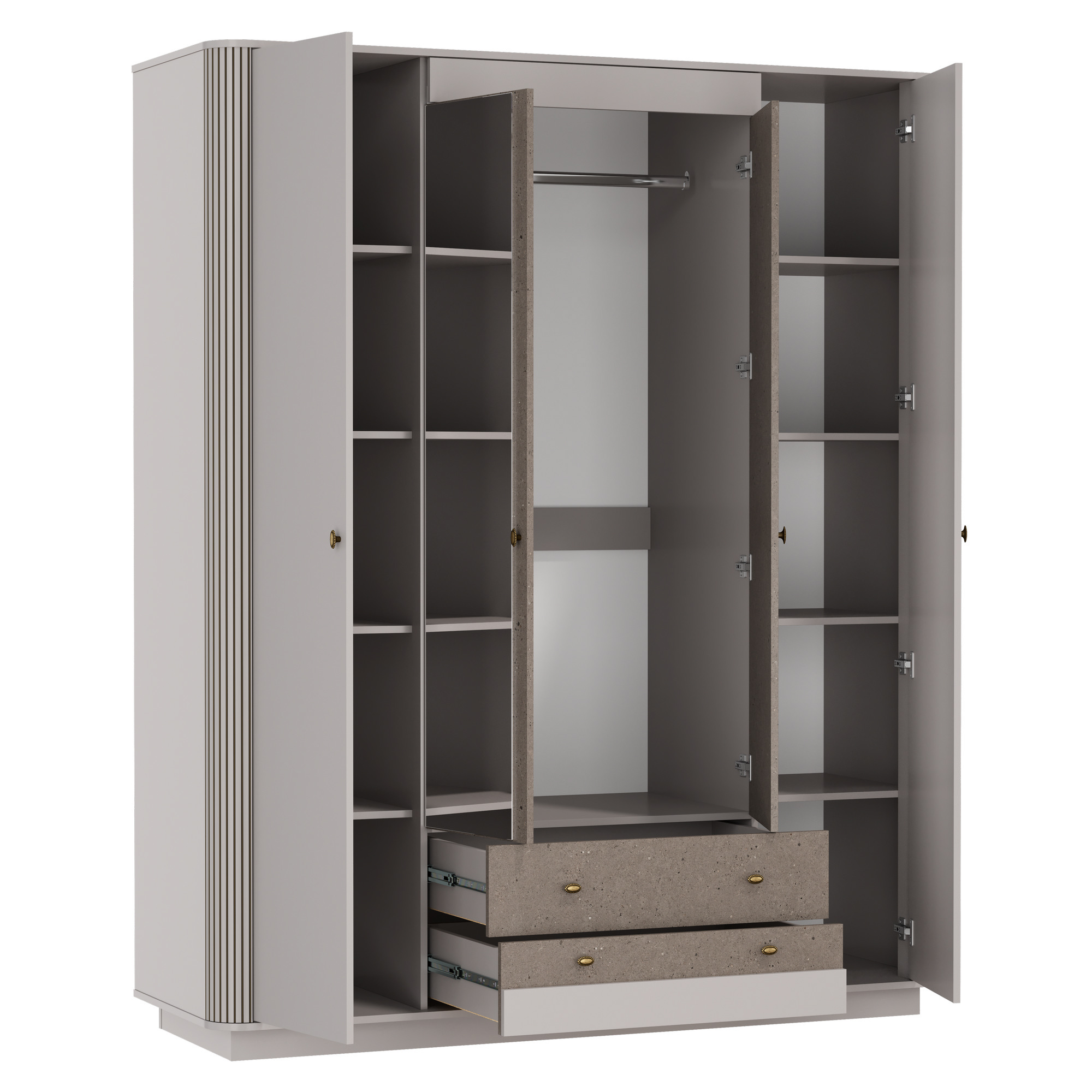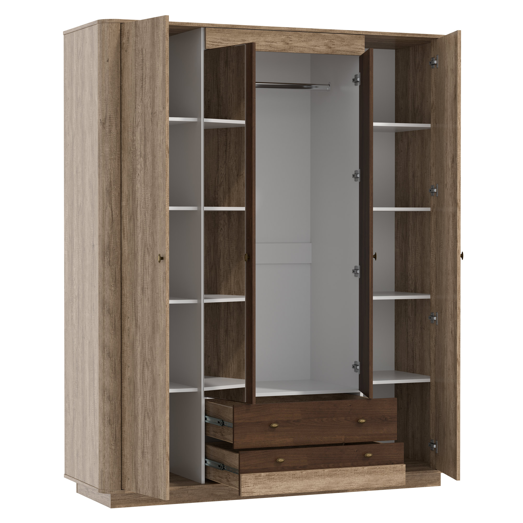 Шкаф для одежды 34.01 Фантазия (4-х дв.) (дуб каньон / белый / дуб кальяри / профиль: дуб каньон / ДВПО: белый / зеркало) исполняется в классическом стиле и спокойных цветах. Модель сочетает в себе простоту и функциональность, но при этом не выглядит громоздко. Она гармонично впишется в пространство, не утяжеляя его.