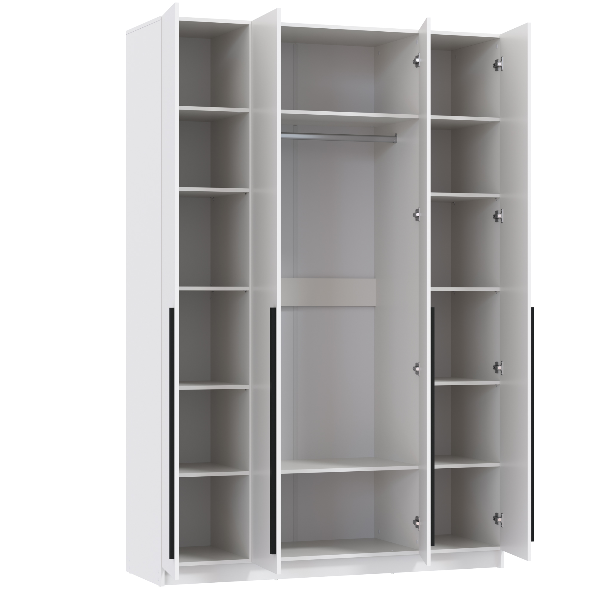 Шкаф для одежды 67.13 Брандо (4-х дв.) (h2400) New (белый / ДВПО: белый / фасад: ЛДСП белый) исполняется в классическом стиле и спокойных цветах. Модель сочетает в себе простоту и функциональность, но при этом не выглядит громоздко. Она гармонично впишется в пространство, не утяжеляя его.