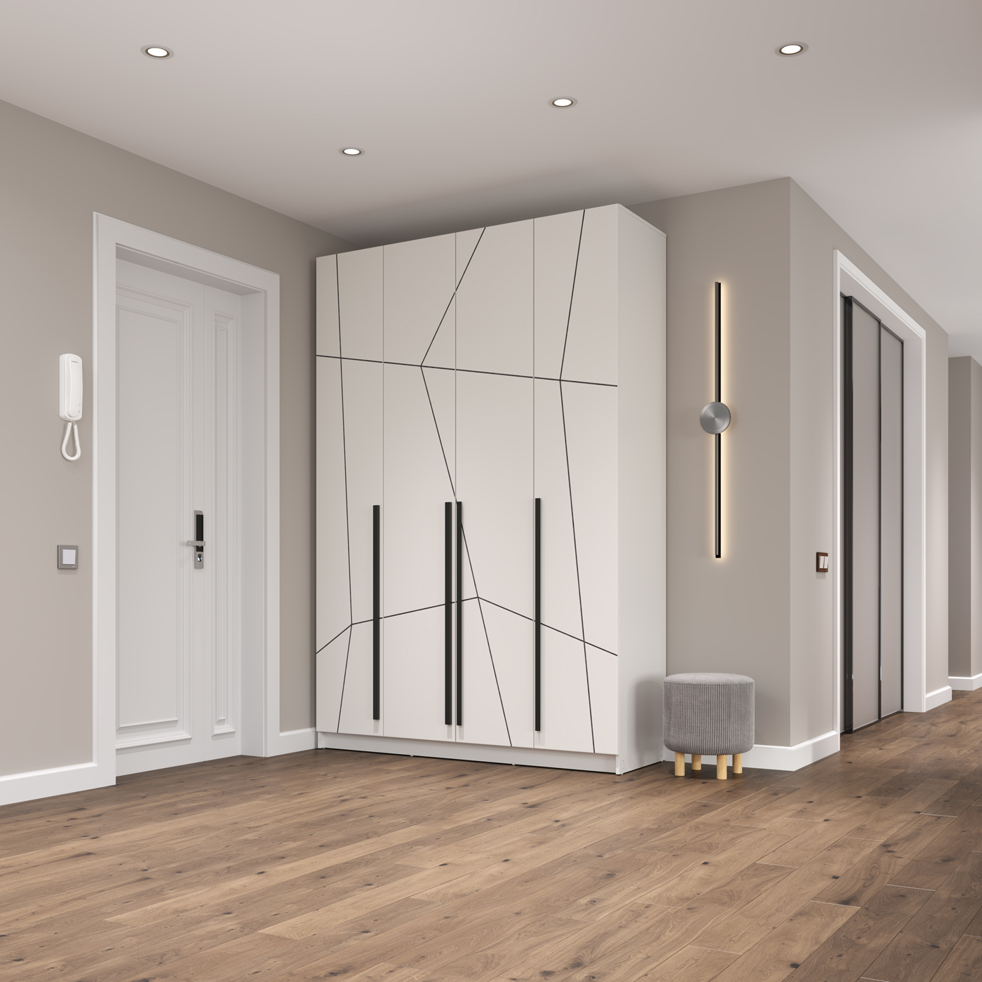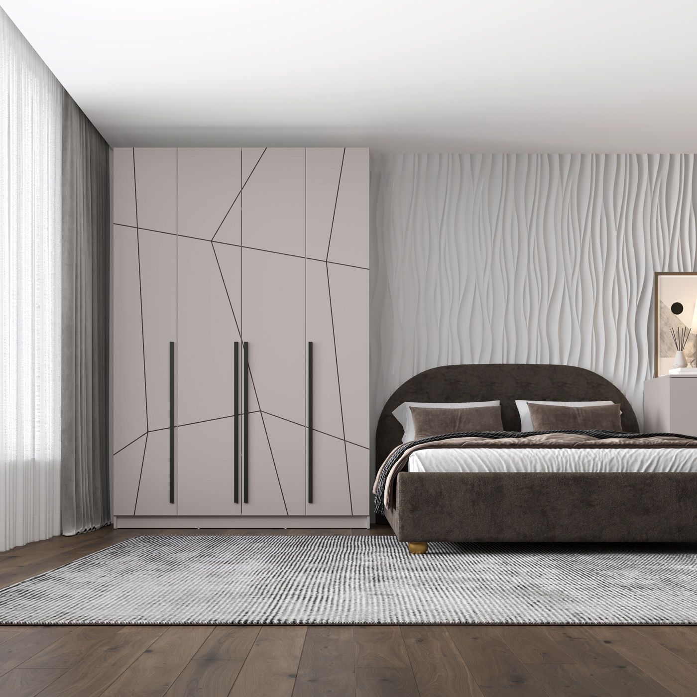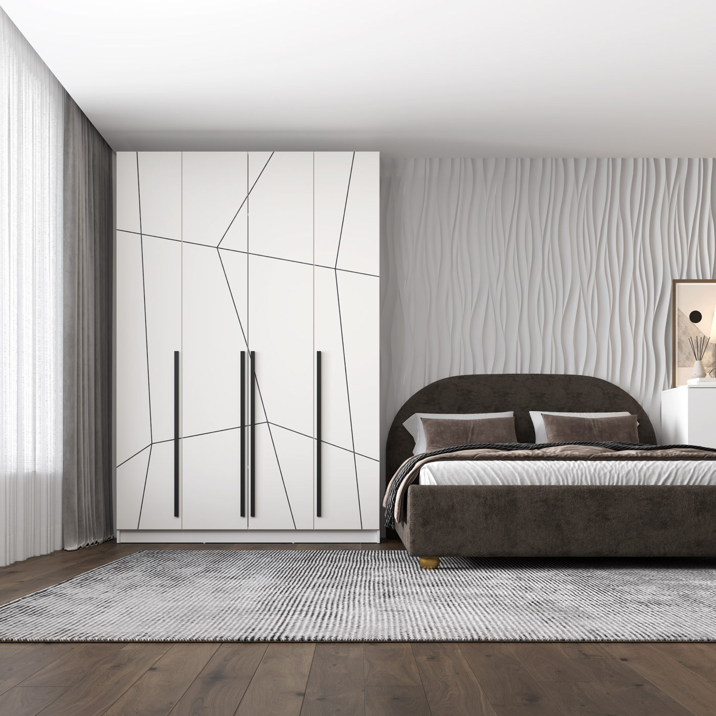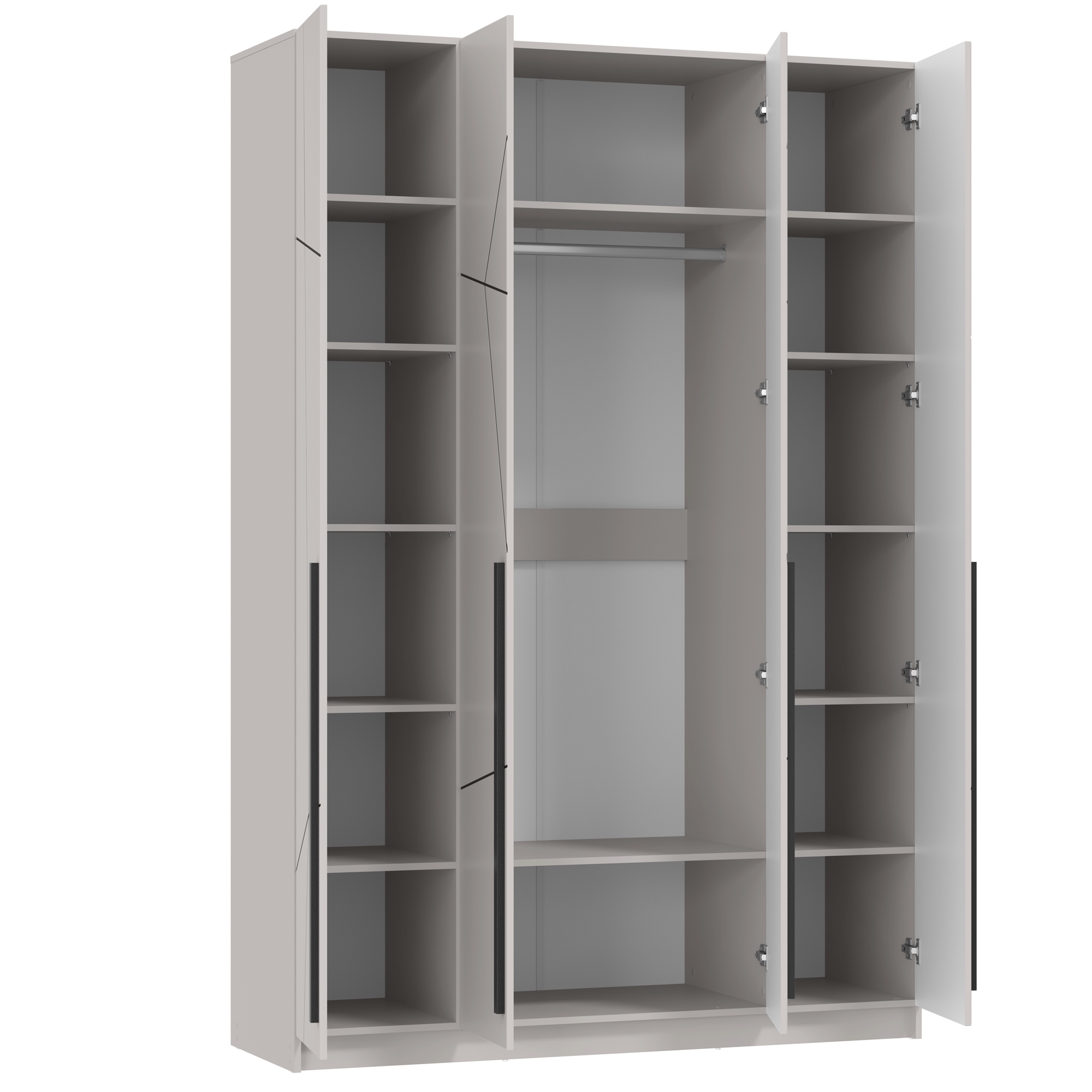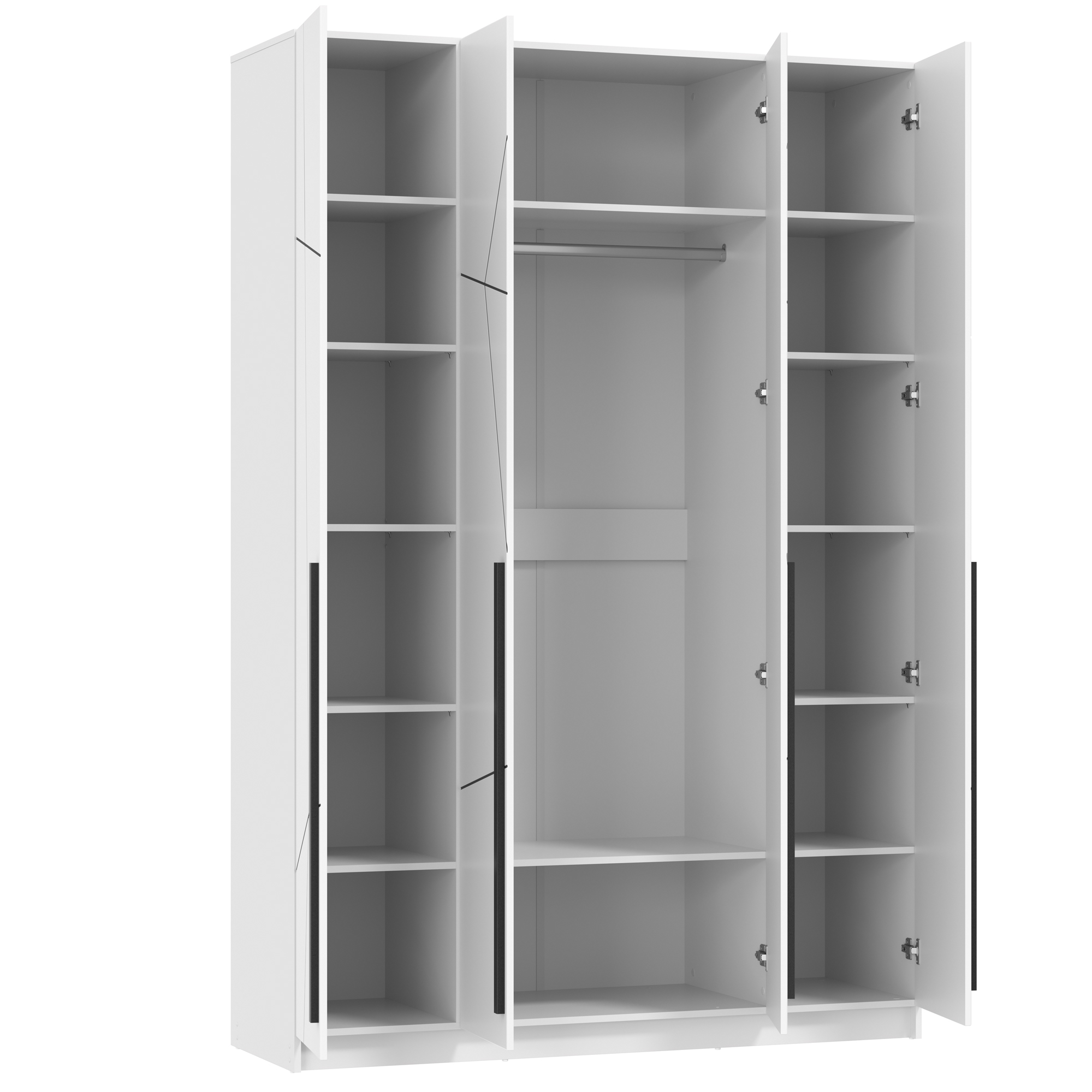 Шкаф для одежды 67.13 Брандо (4-х дв.) (h2400) New (белый / ДВПО: белый / фасад: МДФ геометрия ПВХ белый) совмещает благородную привлекательную эстетику с практичностью и хорошим функционалом. Продуманный дизайн уместно дополнит созданный интерьер и органично впишется в любое помещение.