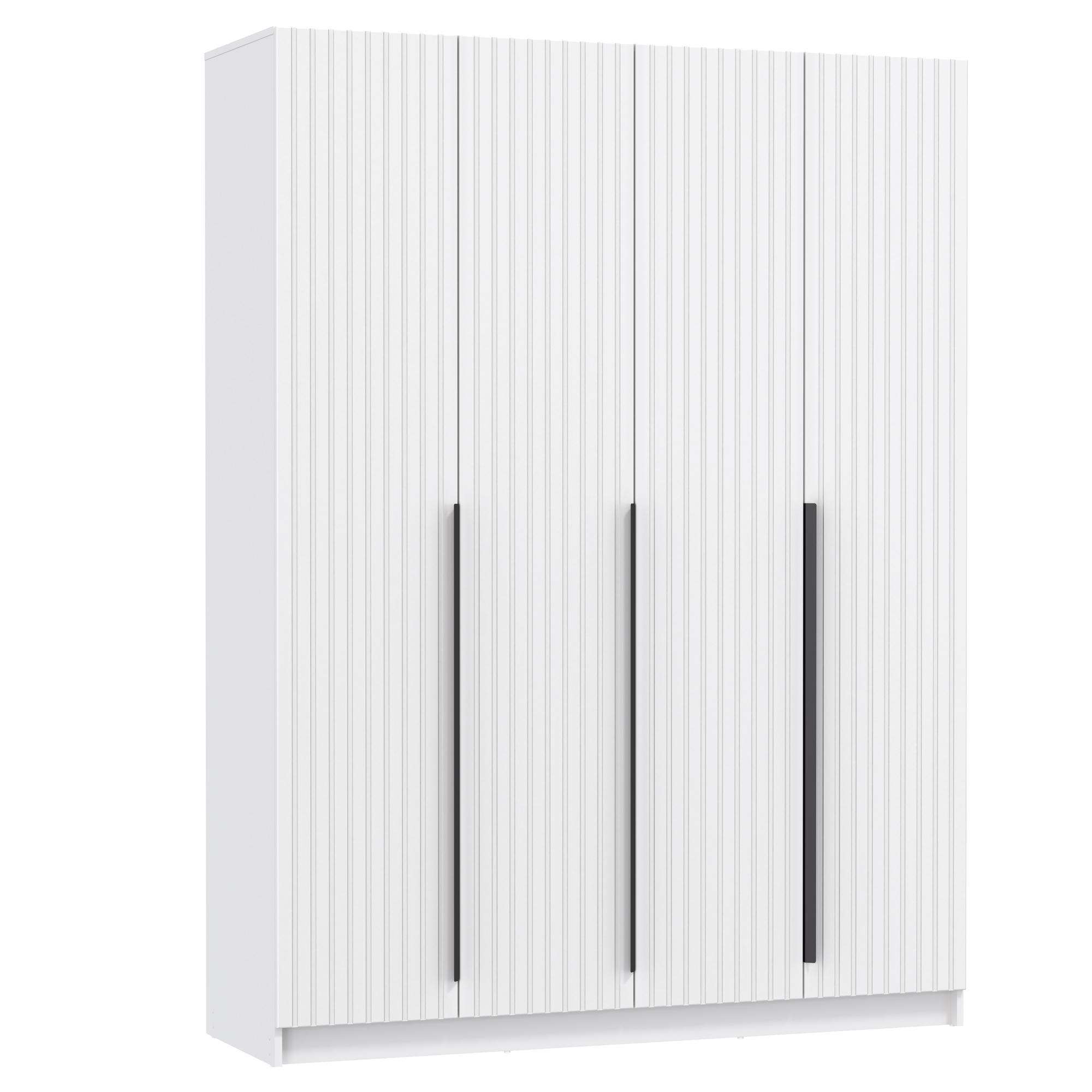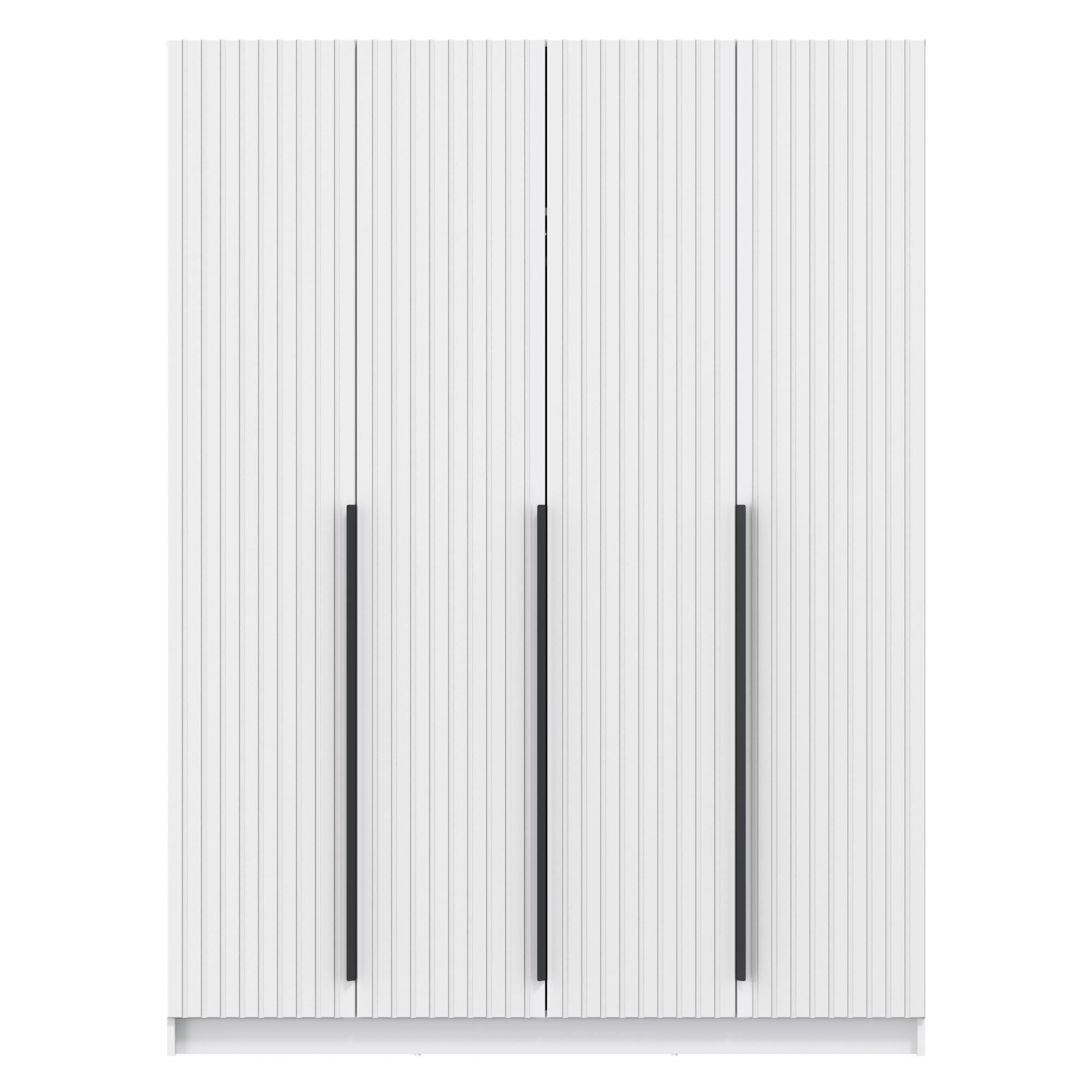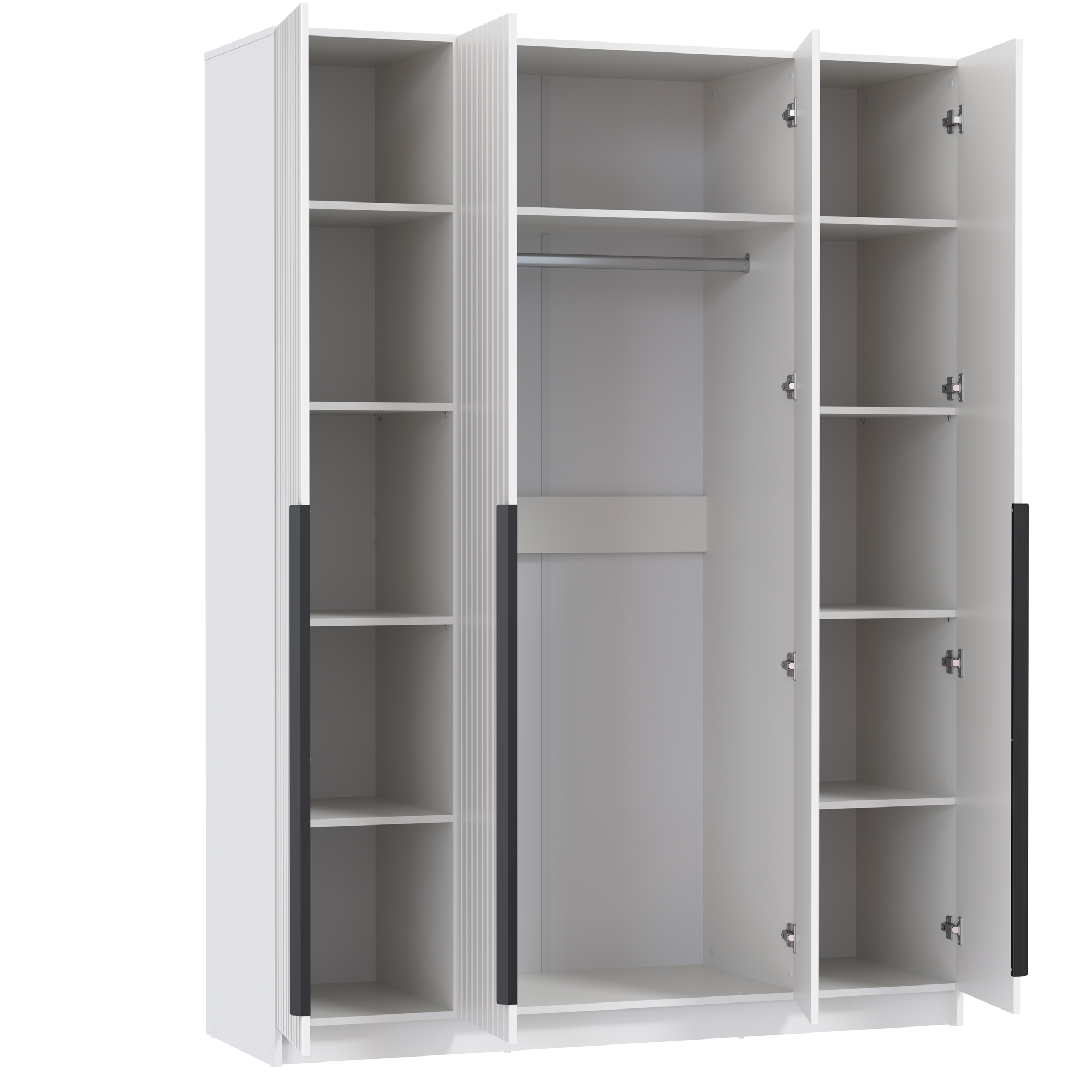 Шкаф для одежды 67.16 Брандо (4-х дв.) (h2150) New (белый / ДВПО: белый / фасад: МДФ ПВХ белый / ручка L1000 металл черный) совмещает благородную привлекательную эстетику с практичностью и хорошим функционалом. Продуманный дизайн уместно дополнит созданный интерьер и органично впишется в любое помещение.