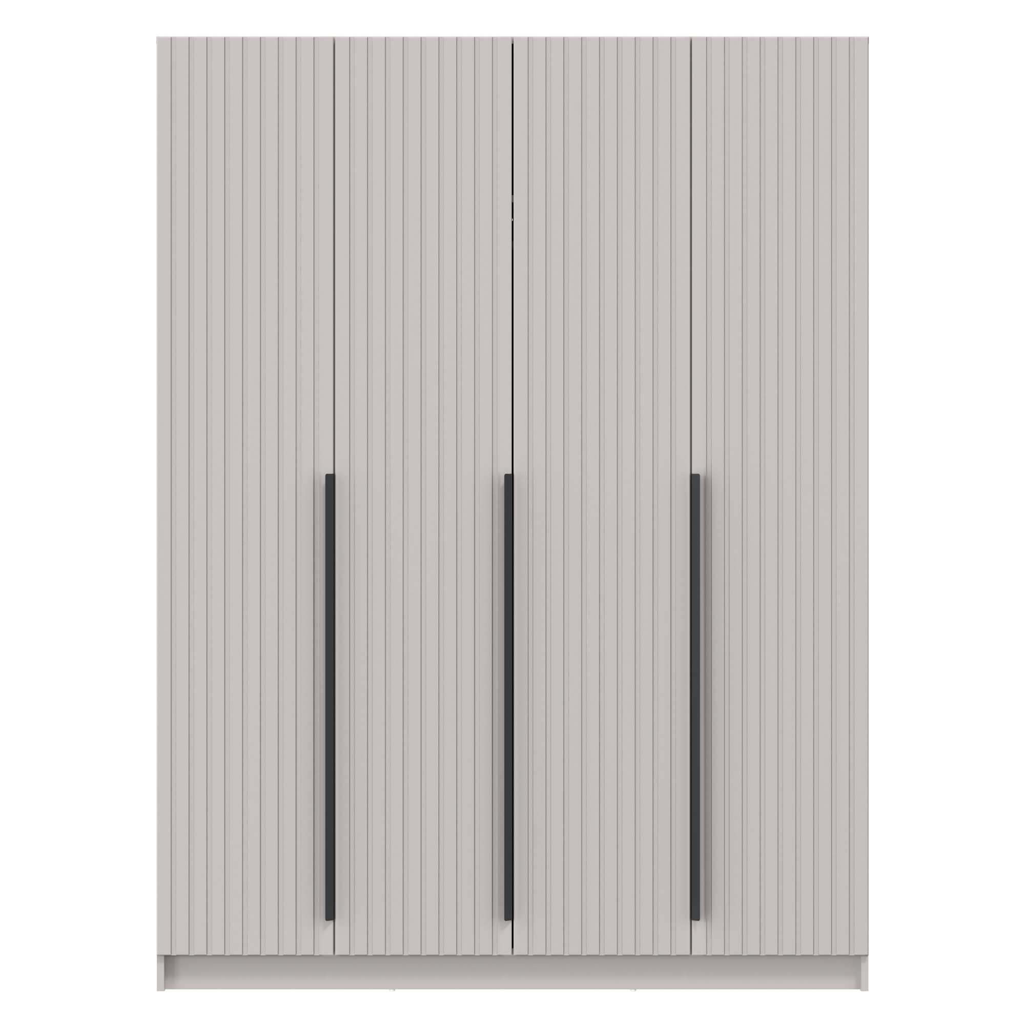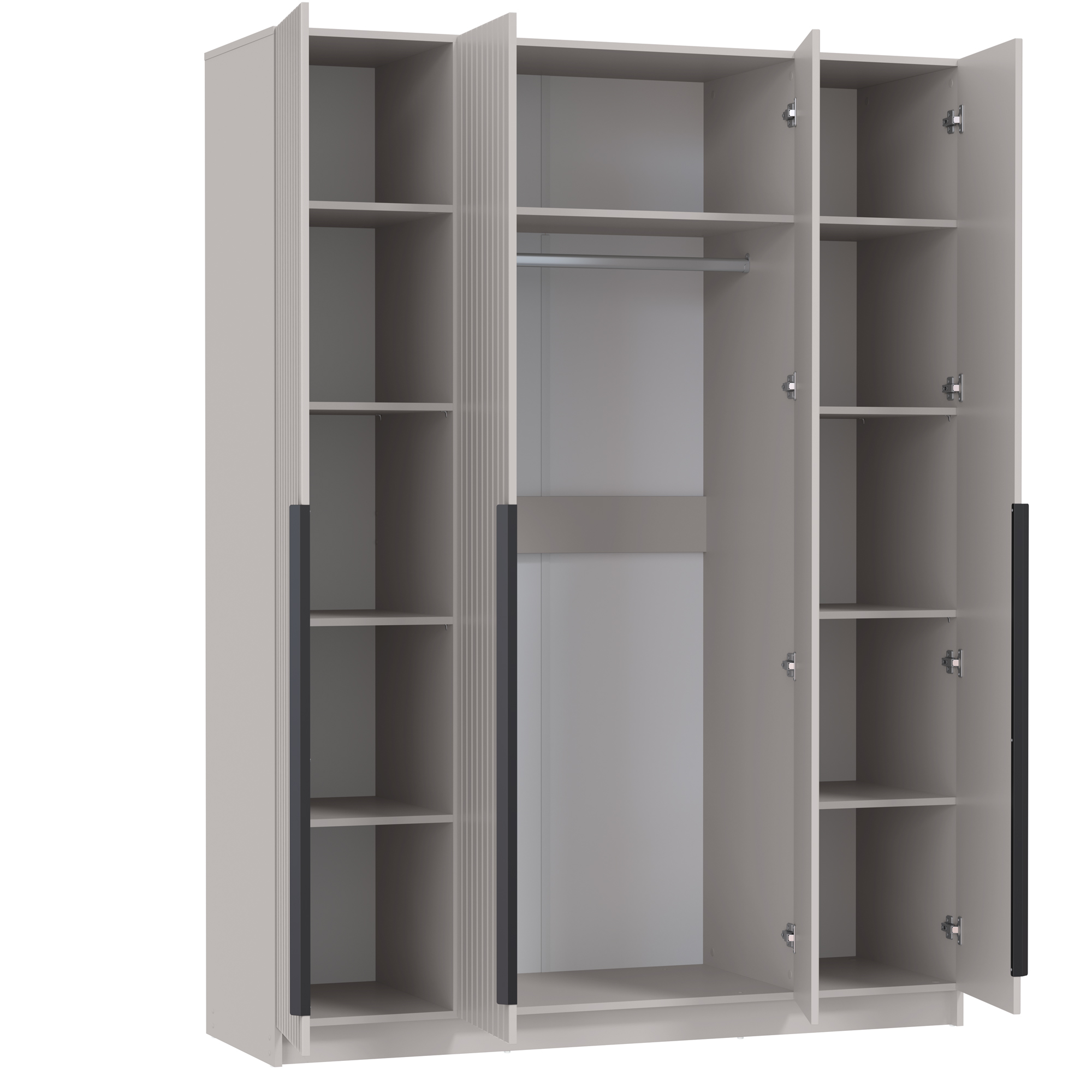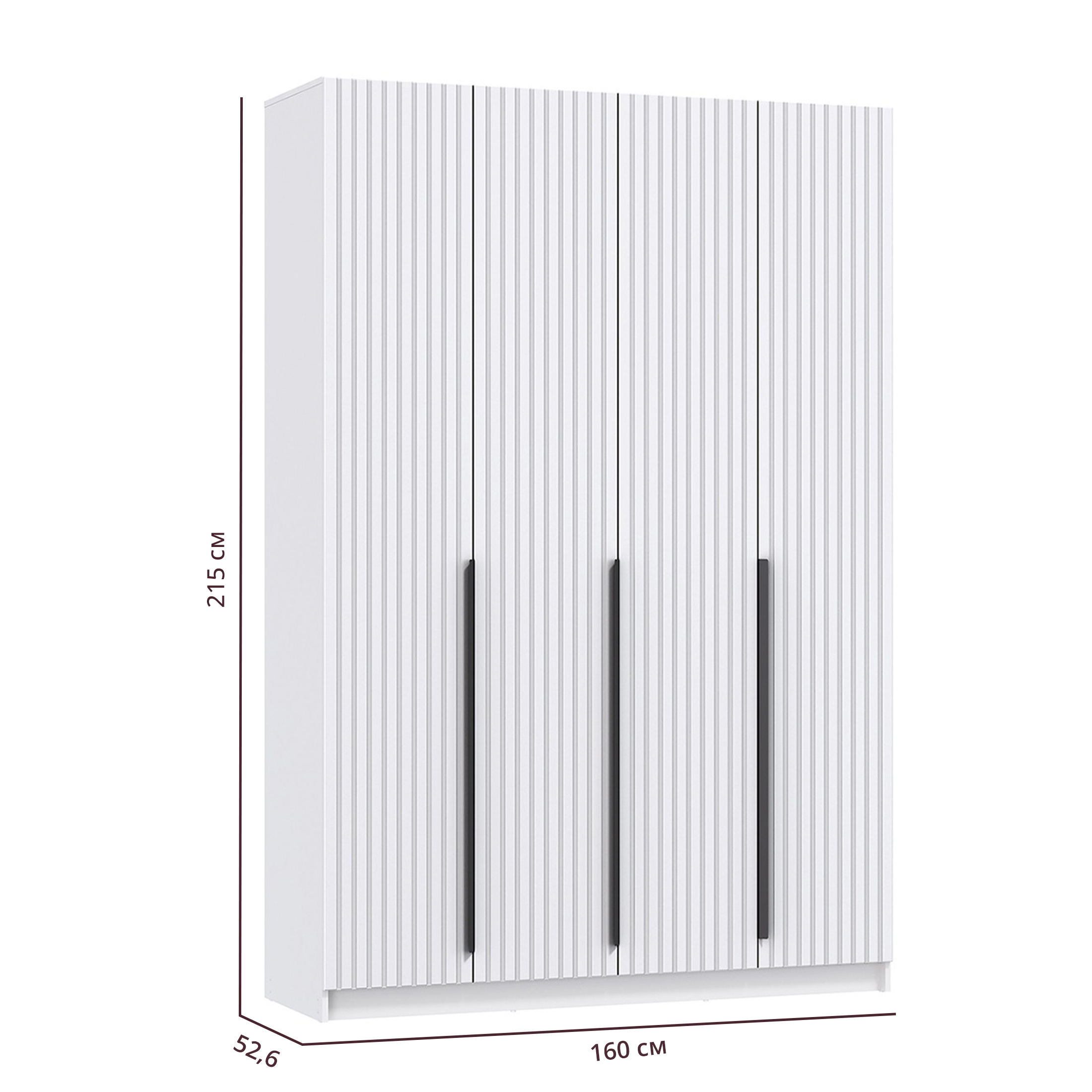 Шкаф для одежды 67.16 Брандо (4-х дв.) (h2150) New (белый / ДВПО: белый / фасад: МДФ ПВХ белый / ручка L1000 металл черный) совмещает благородную привлекательную эстетику с практичностью и хорошим функционалом. Продуманный дизайн уместно дополнит созданный интерьер и органично впишется в любое помещение.