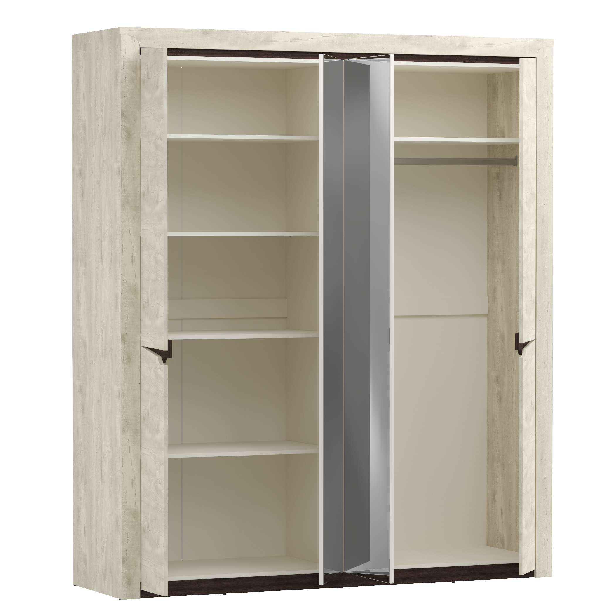 Шкаф для одежды 33.01 Лючия (4-х дв.) # (кейптаун / венге / белый / ДВПО: белый / зеркало) исполняется в классическом стиле и спокойных цветах. Модель сочетает в себе простоту и функциональность, но при этом не выглядит громоздко. Она гармонично впишется в пространство, не утяжеляя его.